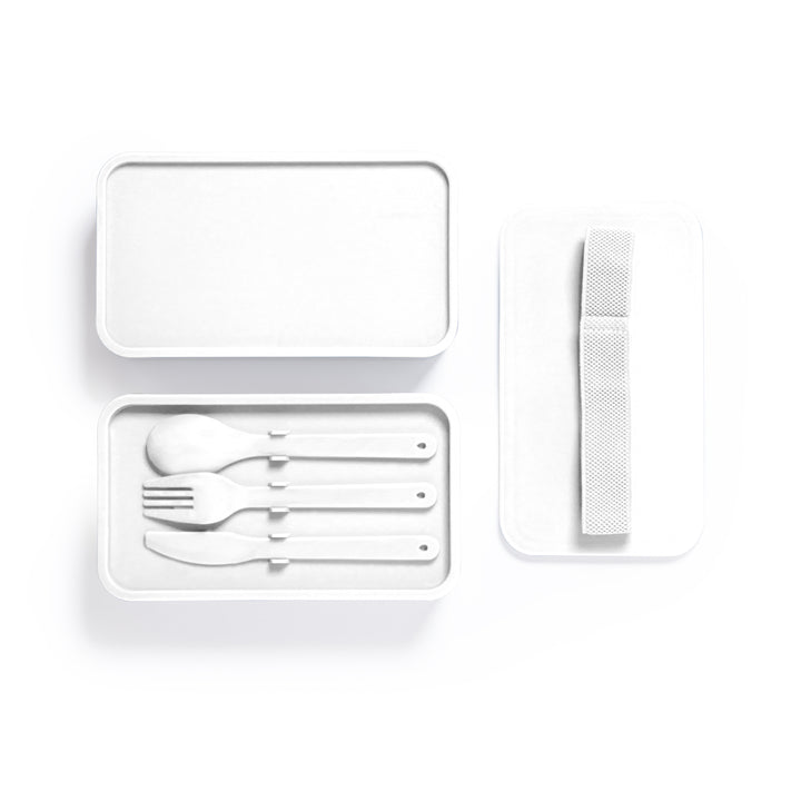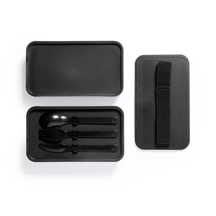 Die Box verfügt über zwei separate Fächer mit jeweils 700 ml Fassungsvermögen, ideal, um unterschiedliche Speisen getrennt und frisch zu halten. Darüber hinaus sind die Innenfächer mit einem praktischen Besteckset – bestehend aus Gabel, Löffel und Messer – ausgestattet, sodass Sie alles Nötige für Ihre Mahlzeit griffbereit haben.