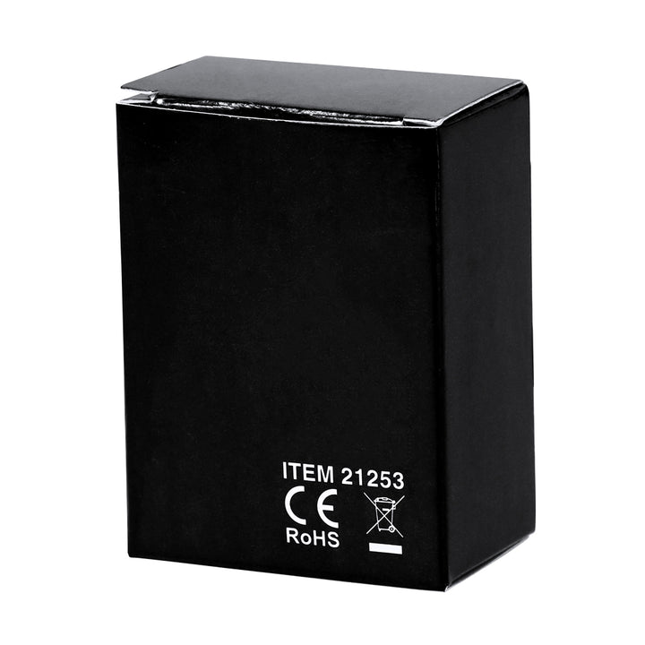 30x Einschlaglupe aus robustem Metall und ABS. Mit integrierter LED-Beleuchtung und großer Vergrößerung für eine sehr nahe Ansicht der kleinsten Details ohne Verzerrung. Ideal für die Inspektion von kleinen Objekten, Text, etc. Die Lupe verfügt über ein Zubehörteil zum Aufhängen und wird in einem Etui mit gepolsterter Innenseite für zusätzlichen Schutz geliefert. Batteriebetrieben (Knopfbatterien im Lieferumfang enthalten), mit speziellem Schlüssel zum Auswechseln, wenn die Batterien leer sind. Präsentiert in einer schwarzen Kartonschachtel.