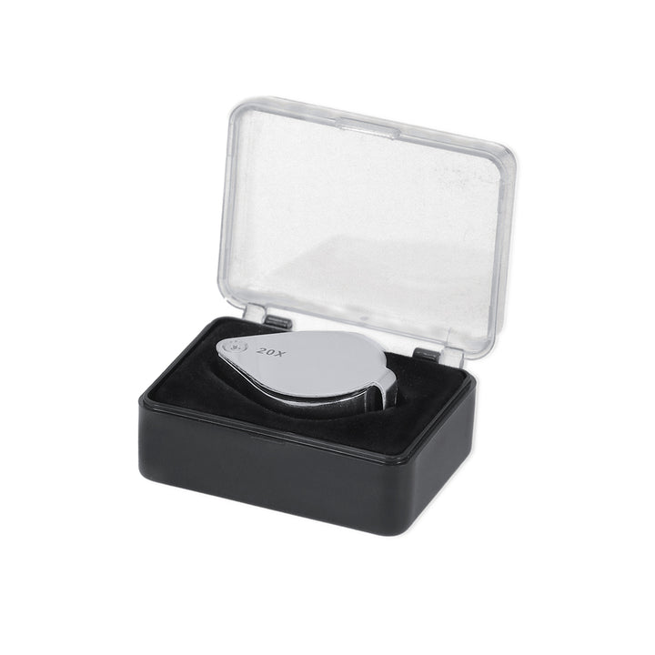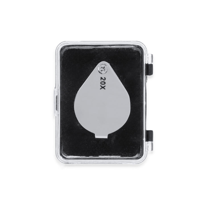 20x Faltlupe aus robustem Metall. Hervorragende Vergrößerung für eine sehr genaue Betrachtung der kleinsten Details ohne Verzerrung. Ideal für die Inspektion von winzigen Objekten, Text, etc. Die Lupe verfügt über ein Zubehörteil zum Aufhängen und wird in einem Etui mit gepolsterter Innenseite für zusätzlichen Schutz geliefert. Präsentiert in einer schwarzen Kartonschachtel.