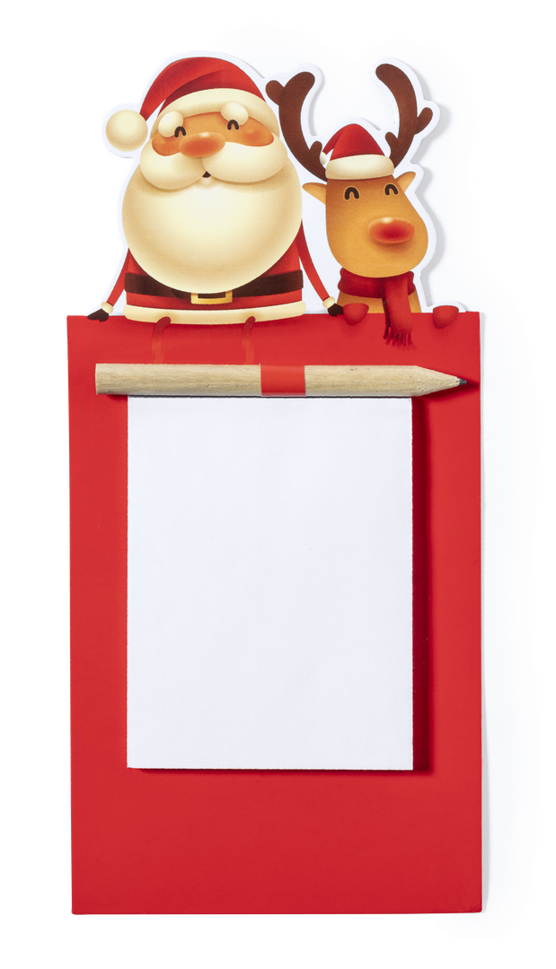Magnet mit Notizblock in einem lustigen Weihnachtsbaumdesign. Inklusive 40 unbedruckten Blättern und Bleistift aus Naturholz.