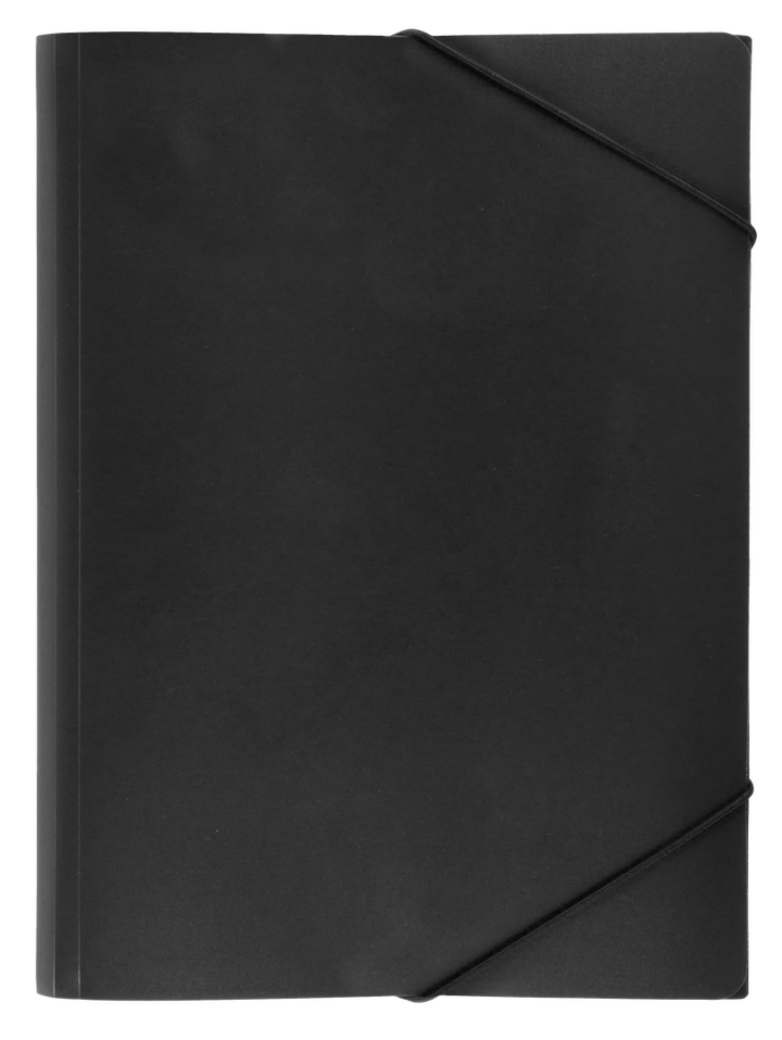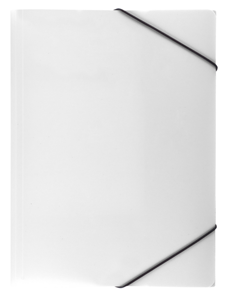 Mappe mit hoher Kapazität und Gummibandverschluss in verschiedenen Farben. Halbtransparente Ausführung mit drei Einschlagklappen.