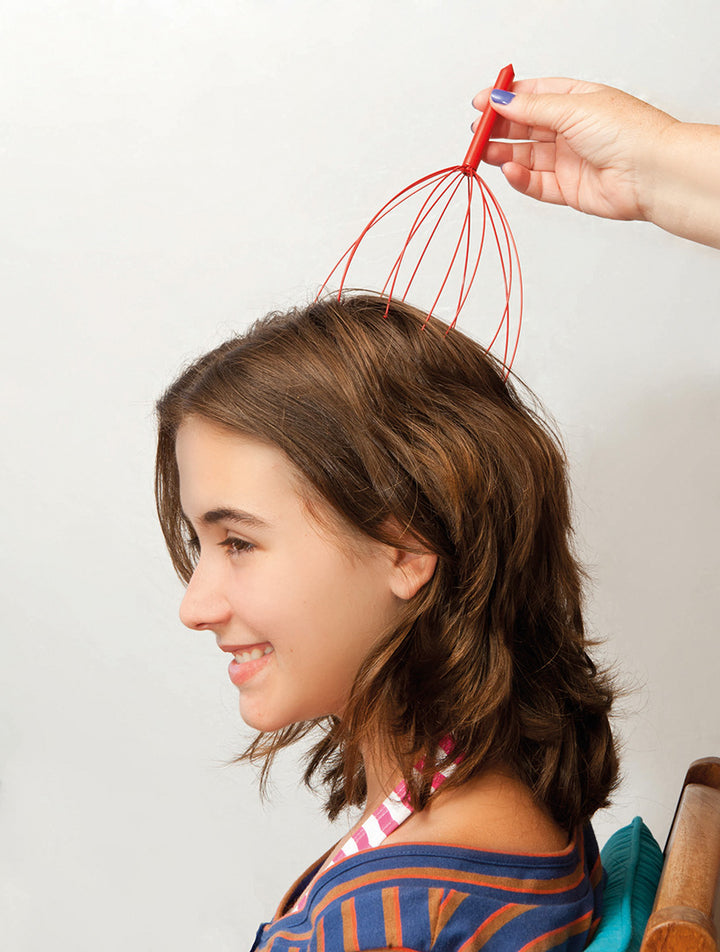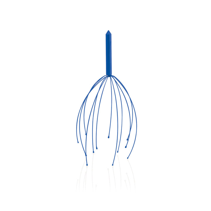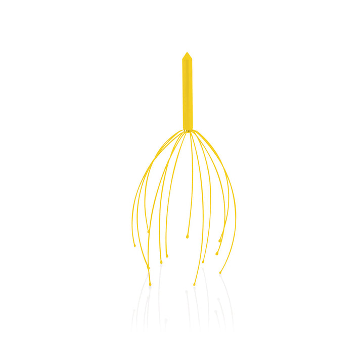 Massagegerät aus Metall in verschiedenen kräftigen Farben. Mit Beinen aus weichem Gummi.