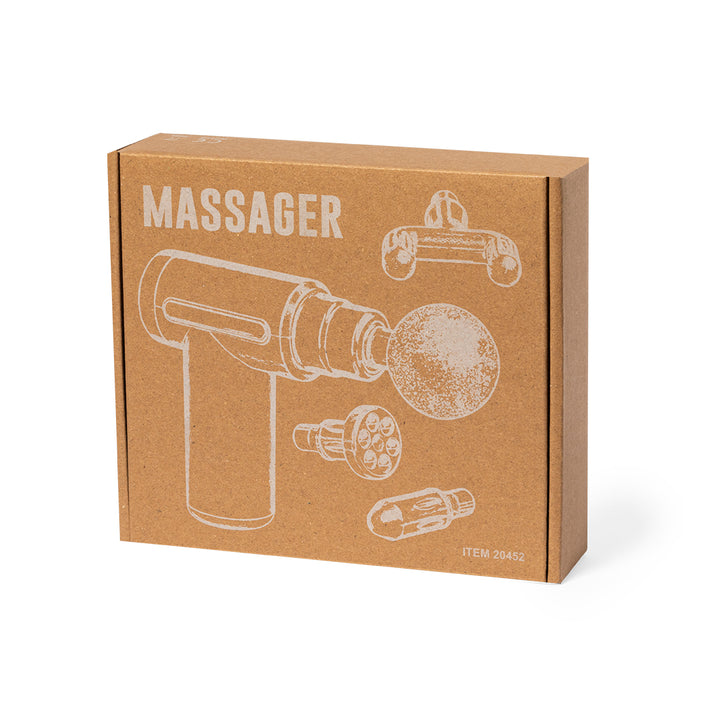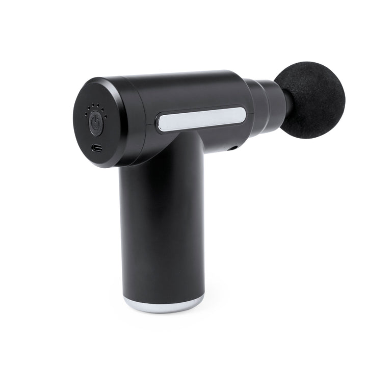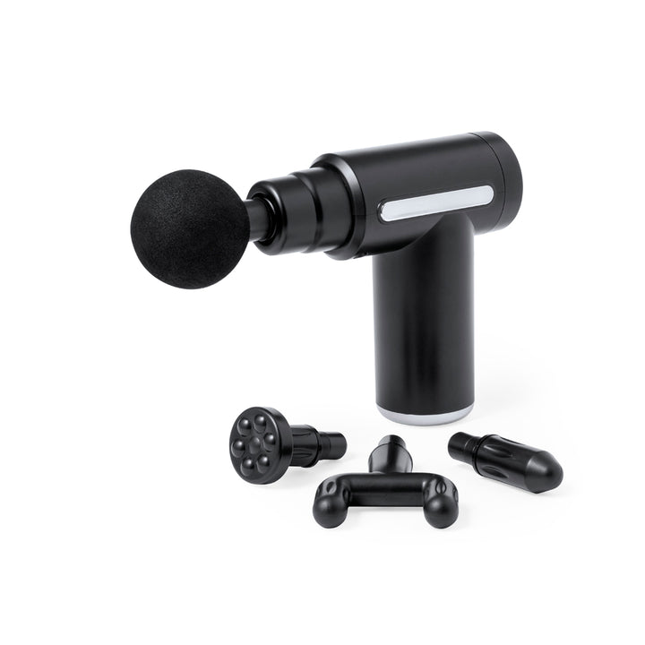 Elektrisches Massagegerät. Hilft, die Muskeln zu entspannen, die Auswirkungen des Trainings zu lindern, Spannungen zu lösen und den Körper zu revitalisieren. Mit zwei Intensitätsstufen und 4 Köpfen zur Anwendung an verschiedenen Körperstellen. Langlebiger, wiederaufladbarer 1200-mAh-Akku - USB-Ladekabel im Lieferumfang enthalten. Gebrauchsanweisung in Englisch und Spanisch erhältlich.