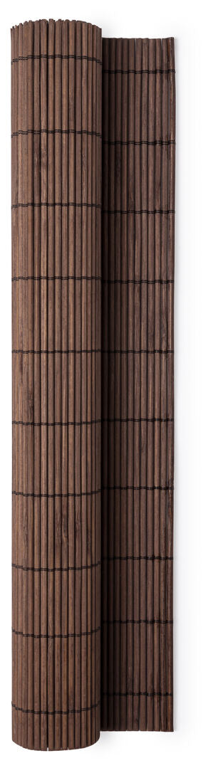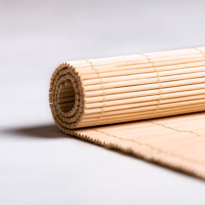 Aufrollbare Platzmatte mit rechteckigem Design aus Bambusholz in verschiedenen Farben. Mit robusten Verstärkungsfäden.