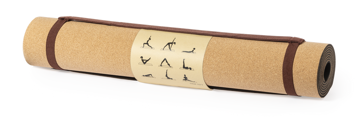 Nature Line Matte zum Üben von Yoga und anderen Aktivitäten. Aus widerstandsfähigem Naturkork, mit rutschfestem Boden aus TPE. Größe 60x180 cm, mit Tragegriff und präsentiert in einer attraktiven Eco-Design Einzelhülle, mit Übungsillustrationen..