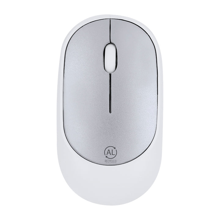 Kabellose optische Maus aus robustem RABS (recyceltes ABS), mit recycelter Aluminium-Oberplatte. Ergonomisches Design und kabellose Verbindung (USB-Anschluss inklusive). Mit recyceltem Aluminiumlogo. Batteriebetrieb (1xAA nicht im Lieferumfang enthalten).RABS ist ein hoch recycelbarer und hoch widerstandsfähiger Kunststoff mit vielfältigen Anwendungen, der eine umweltfreundliche Lösung darstellt. Mit RCS-Zertifizierung, die seine recycelte Herkunft garantiert.Recyceltes Aluminium ist ein Material mit nahezu unendlichen Recyclingmöglichkeiten, ohne dabei seine ursprünglichen Eigenschaften zu verlieren und weniger Energie im Prozess zu verbrauchen.GRS (Global Recycled Standard) Zertifizierung, die die recycelte Herkunft des für die Herstellung des Produkts verwendeten Materials garantiert.