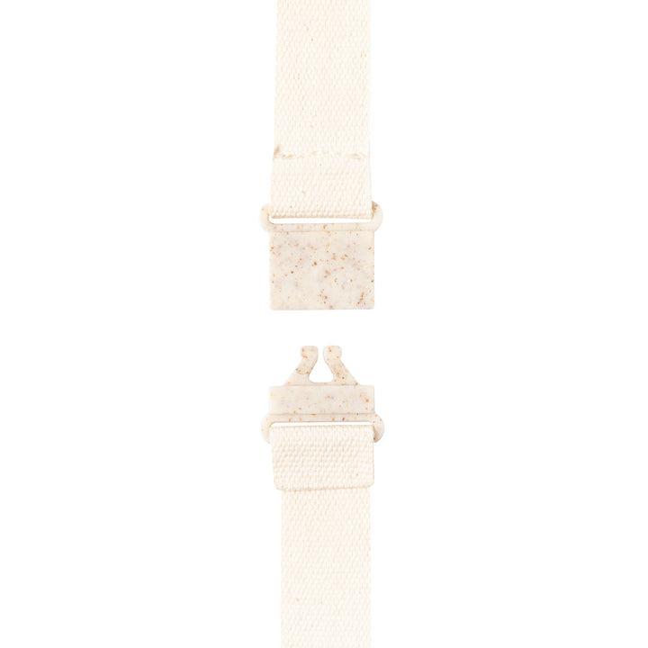 Medalla de línea nature fabricada en madera natural. Cordón fabricado en 100% algodón, con cierre de seguridad de fibra de trigo en el cuello.