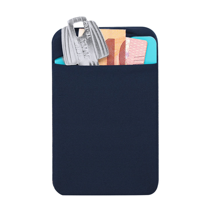 Multifunktionshülle aus elastischem Material, entworfen um sich bequem an verschiedene persönliche Gegenstände wie Karten, Geld, Kopfhörer, Schlüssel und mehr anzupassen. Mit selbstklebendem Befestigungssystem.