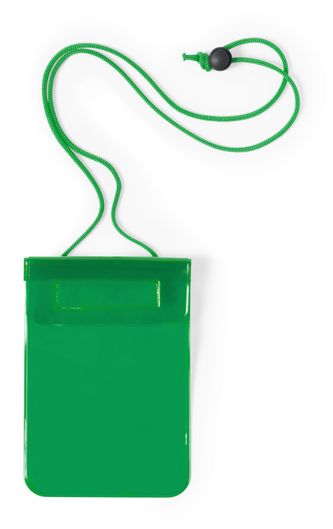 Praktische, wasserdichte Tasche in XL-Größe. Hergestellt aus transparentem PVC mit wasserdichtem Verschluss und Touch-Funktion. Klappe mit farblich passendem Klettverschluss und Tragekordel mit Stopper.