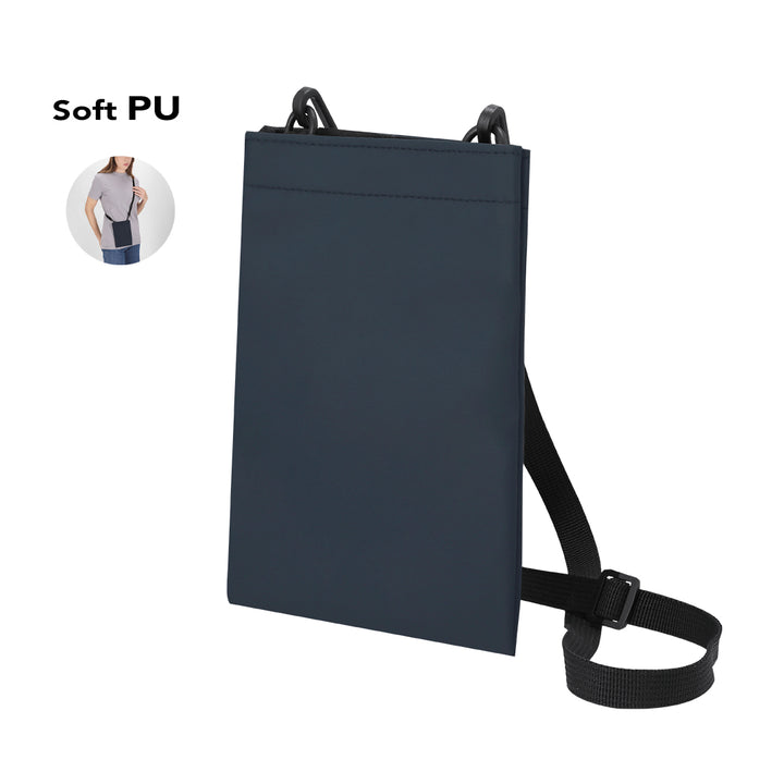 Stiftemäppchen aus weichem PU. Hauptfach mit Klettverschluss und weit öffnendem Futter. Beinhaltet verstellbare flache Träger mit drehbarem Mosqueton.