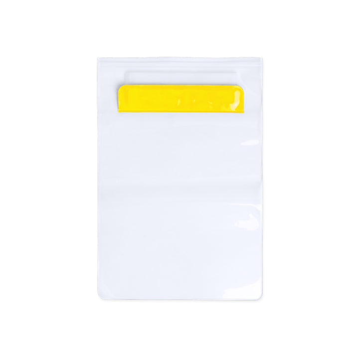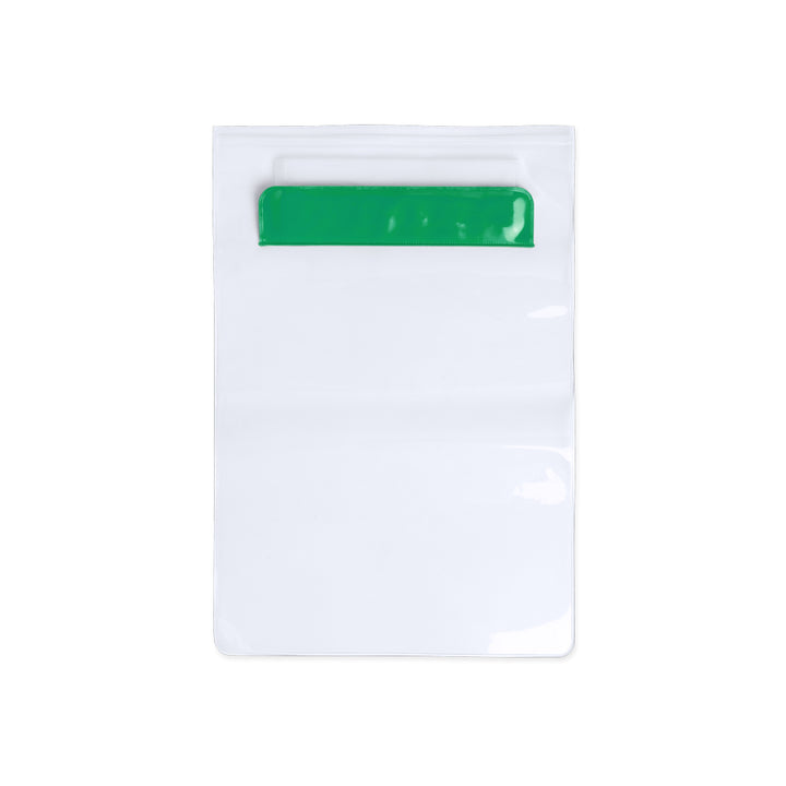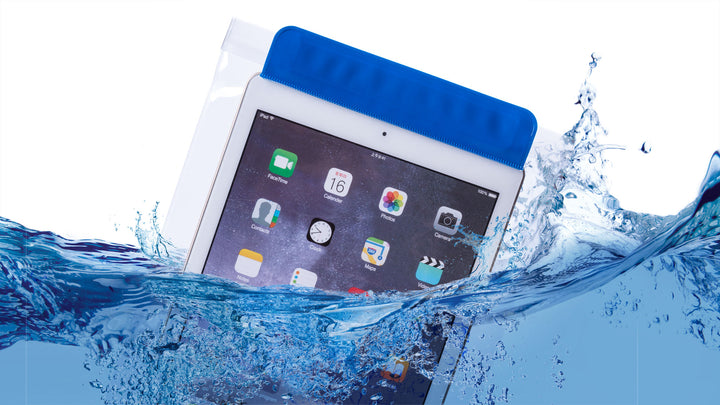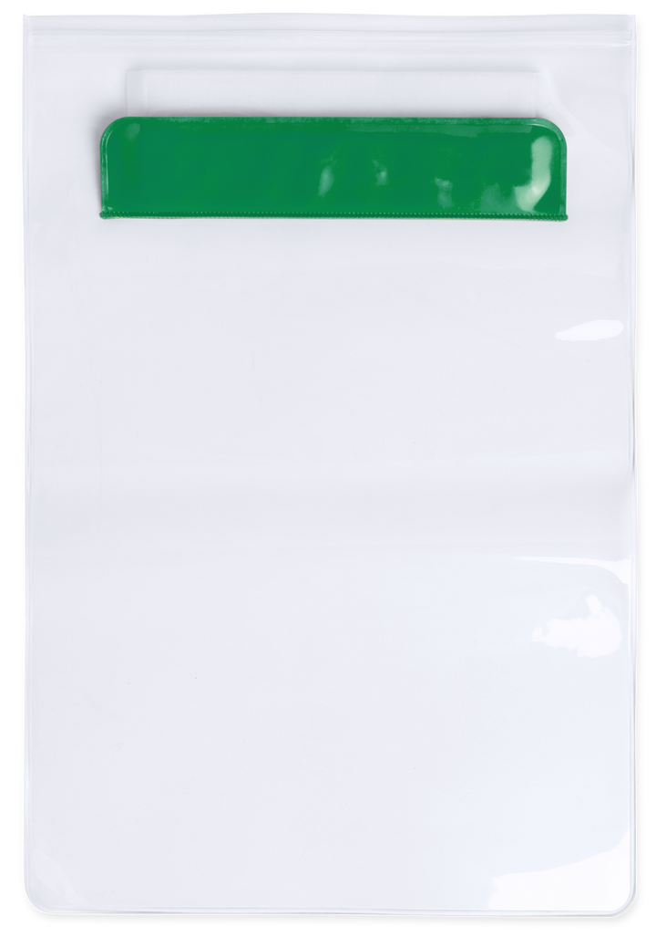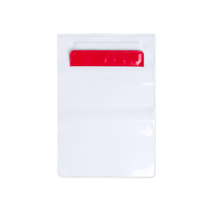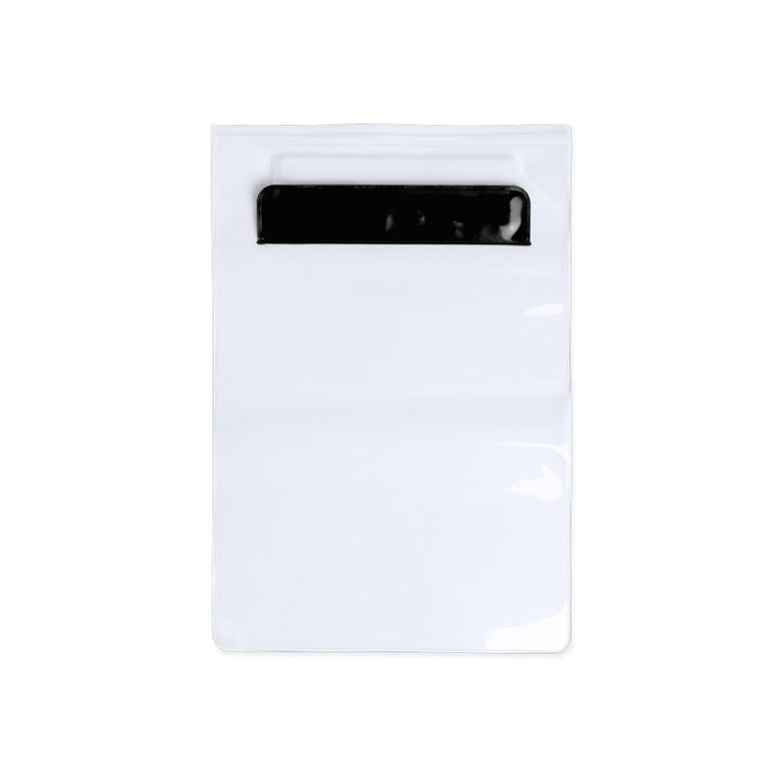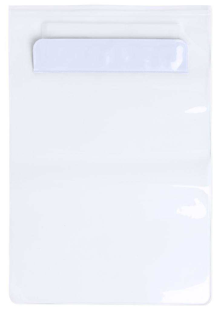 Práctico portatodo impermeable en PVC con función táctil, diseñado especialmente para tablets de hasta 9,7 pulgadas y doble sistema de seguridad para preservar la estanqueidad. Con solapa frontal en variada gama de colores.