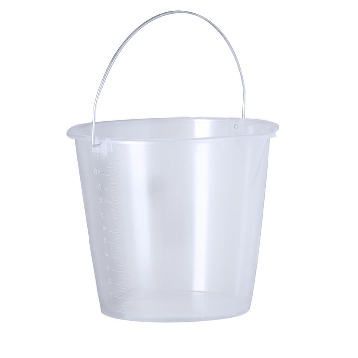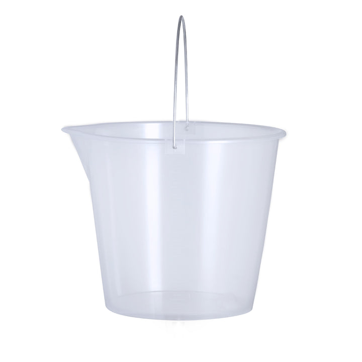 11-Liter-Eimer aus robustem, transparentem PP. Mit Metallgriff und seitlichem Messbecher in ml zum schnellen und einfachen Ablesen. Abgerundete Kontur mit Ausgießer, um ein Verschütten zu verhindern, sowie eine große Brandingfläche.