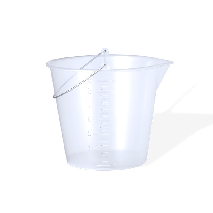 6-Liter-Eimer aus robustem, transparentem PP. Mit Metallgriff und seitlichem Messbecher in ml zum schnellen und einfachen Ablesen. Abgerundete Kontur mit Ausgießer, um ein Verschütten zu verhindern, sowie eine große Brandingfläche.