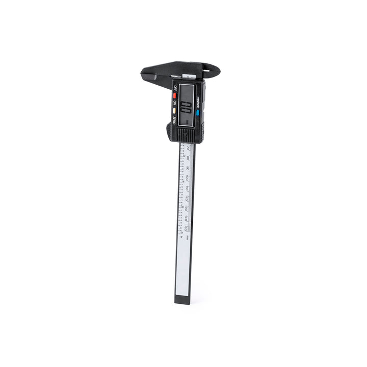 Messschieber mit digitalem und analogem Messmodus. Mit LCD-Display und ON/OFF-Tasten, ZERO für die Einstellung und eine andere, um die mm oder Zoll zu wählen. Inklusive Sonde zur Messung der Tiefe und Tasterzirkel für die Messung der Innenseite von Objekten. Messbereich bis zu 150 mm, mit Anleitung in Englisch und Spanisch und in einer individuellen Kraft-Design-Box präsentiert.