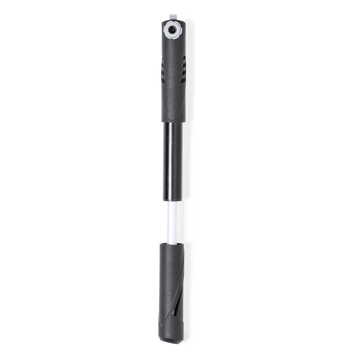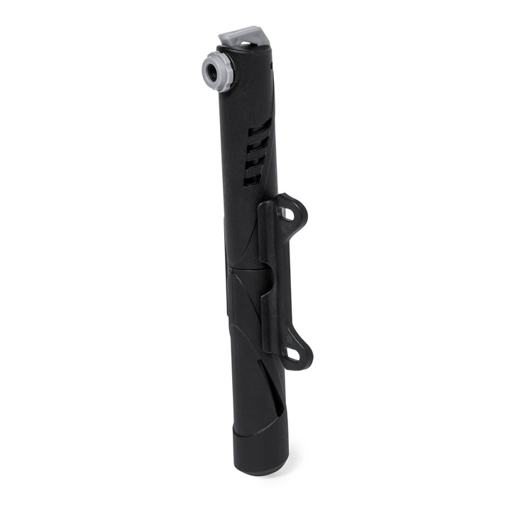 Praktische Fahrradpumpe aus widerstandsfähigem Aluminium. Manuell bedient und kompakt; mit passendem Zubehör passend für alle Fahrradtypen.