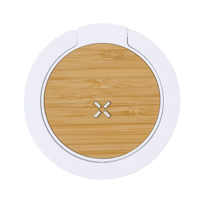 Multifunktionslampe aus Bambus. Mit integriertem 15W Wireless-Ladegerät und 27 LEDs in einem klappbaren Ring mit Halterfunktion. Kompatibel mit drahtlosen Ladegeräten und mit Typ-C-Ladekabel im Lieferumfang enthalten. Präsentiert in einer attraktiven Kraft-Design-Box. Bedienungsanleitung in Englisch und Spanisch.Materialien wie Bambus fördern die Verwendung natürlicher Rohstoffe und reduzieren die Schadstoffemissionen. Es stammt von einer sehr widerstandsfähigen und vielseitigen Pflanze mit schnellem Wachstum und Regeneration, was es zu einer ausgezeichneten Alternative zu traditionellem Holz macht.Hergestellt nach RoHS-Standards und in Übereinstimmung mit den folgenden Sicherheitsanforderungen:Überhitzungsschutzsystem.Überladungsschutzsystem.Blockiersystem zur Vermeidung von Kurzschlüssen.