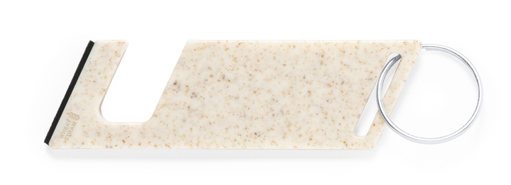 Multifunktionaler Schlüsselanhänger der Linie Natur aus Weizenstroh, der die Verwendung natürlicher Rohstoffe fördert und die Schadstoffemissionen reduziert. Mit integrierter Smartphone-Halterung und Bildschirmreinigungszubehör im Lieferumfang enthalten. Mit unverwechselbarem Weizenstroh.