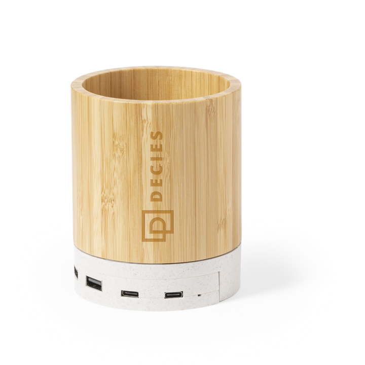 4-in-1-Multifunktionsstift aus Bambus und Weizenfaser.Mit Stiftfunktionen, Smartphone-Halter, kabellosem 5W-Ladegerät, USB-Anschluss (2xUSB 2.0 und 1x Typ C). Kompatibel mit Smartphones mit kabelloser Qi-Ladetechnologie. Inklusive 1 Meter langem Typ-C-Kabel in Weiß. Präsentiert in einer attraktiven Kraftbox. Gebrauchsanweisung in Englisch und Spanisch erhältlich.Hergestellt aus pflanzlichen Bestandteilen, um die Verwendung natürlicher Rohstoffe zu fördern und Schadstoffemissionen zu reduzieren.