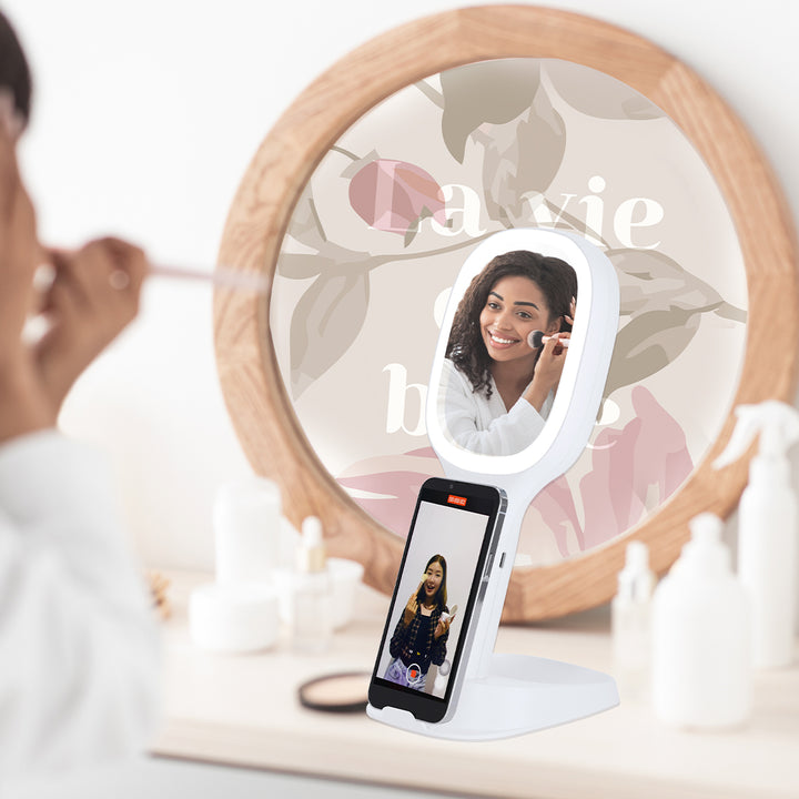 Multifunktions-Spiegel mit vielseitigen Funktionen:- Ein 1x-Spiegel auf der einen Seite und ein 5x- Vergrößerungsspiegel auf der anderen Seite.- 15W kabelloser Ladegerät.- Smartphone-Halter.- Fach für kleine Gegenstände.Hergestellt gemäß RoHS-Standards und in Übereinstimmung mit den folgenden Sicherheitsanforderungen:Überhitzungsschutzsystem.Schutzsystem gegen Überladung.Blockiersystem zur Vermeidung von Kurzschlüssen.