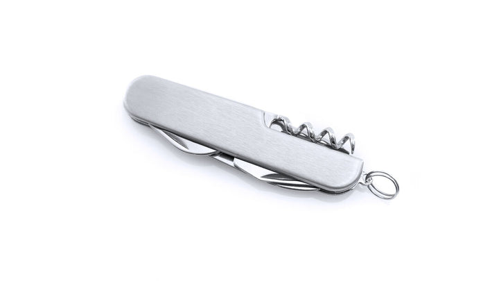 Vielseitig verwendbares Taschenmesser mit 6 Funktionen. Enthält Messer, verschiedene Öffner, Schraubendreher und Schlüsselring. Präsentiert in einer individuellen Box.