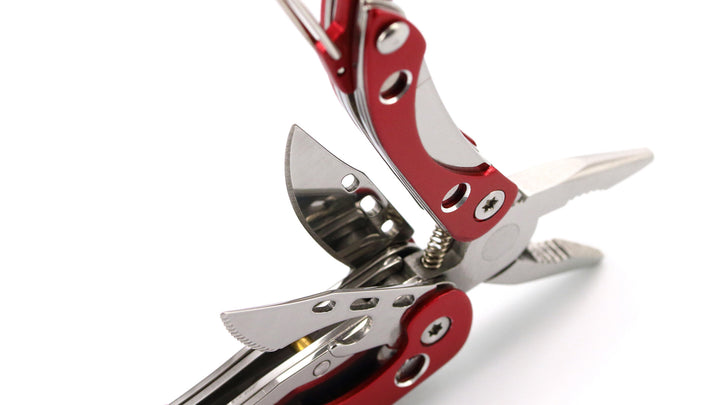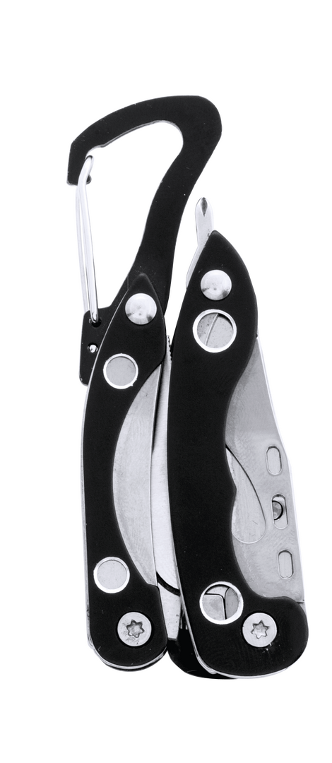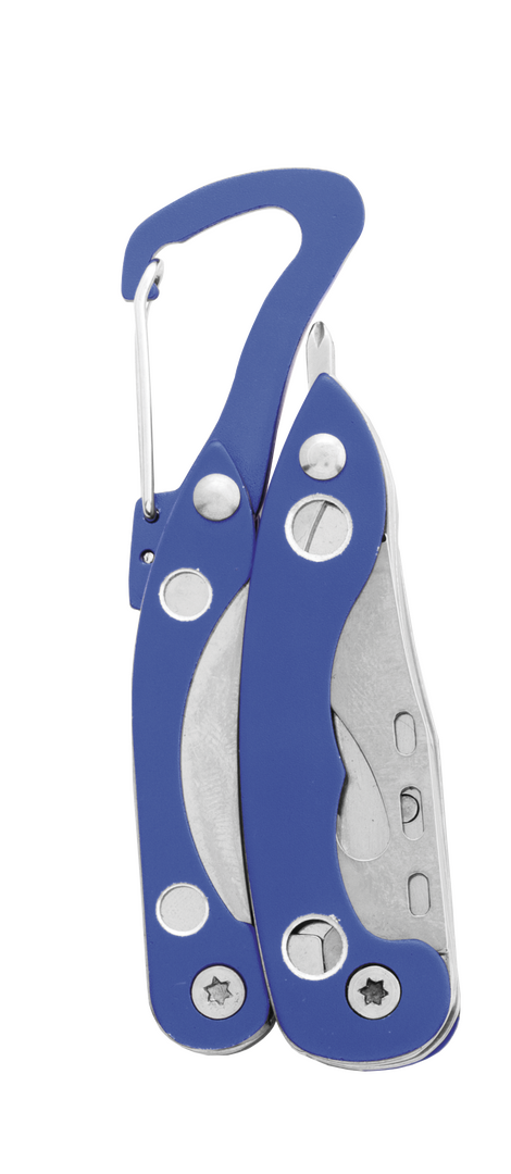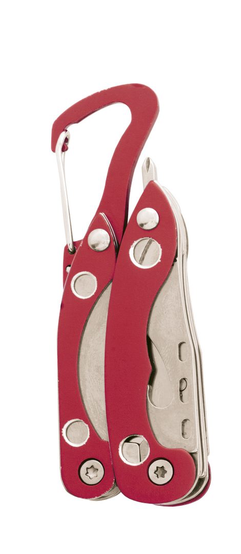 Multi-Tool von Orizons mit 6 Edelstahl-Funktionen und Aluminiumgriff in lebendigen Farben. Mit Zange, Taschenmesser, Dosenöffner mit Schlitzschraubendreher mit Flaschenöffnerfunktion, Kreuzschraubendreher und Karabiner. Präsentiert in einer attraktiven Designbox mit dem Markenlogo.