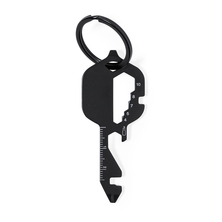 Originelles und praktisches Multitool aus Edelstahl mit Schlüsselring. Mit 13 Funktionen, darunter Schlitz- und Kreuzschlitzschraubendreher, Sechskantschlüssel in verschiedenen Größen, Lineal und Flaschenöffner. Wird in einem Kartonumschlag geliefert.