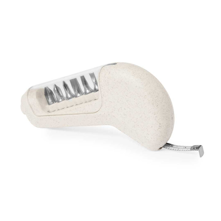 Funktionen: 1 Meter Maßband (Zoll und Zentimeter), 3 flache Bits, 3 Kreuzschlitz-Bits