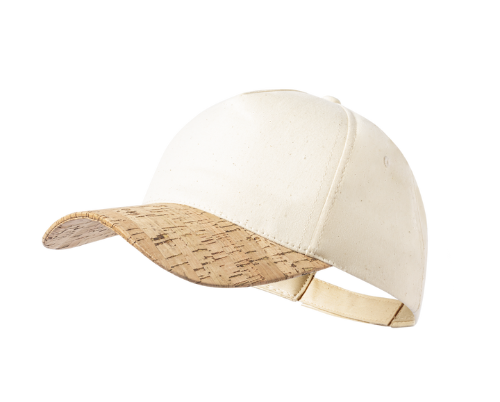 5-Panel Cap der Liene "Natur" aus Bio-Baumwolle, mit Naturkork-Visier. Mit verstellbarem Klettverschluss.