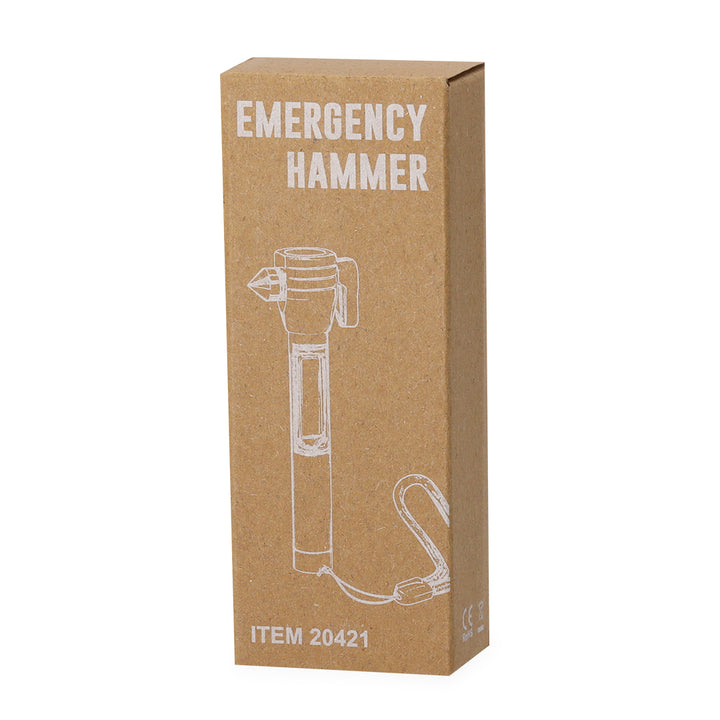 Vielseitiger Nothammer mit drei Funktionen: eine leistungsstarke Taschenlampe mit 6 COB-Leuchten, die mit Knopfbatterien (im Lieferumfang enthalten) betrieben werden, eine Metall-Glasbrecherspitze und eine Gurtschneideklinge. Mit einem Riemen für besseren Halt und einem magnetischen Bereich an der Oberseite. Präsentiert in einer individuellen Kraftbox.