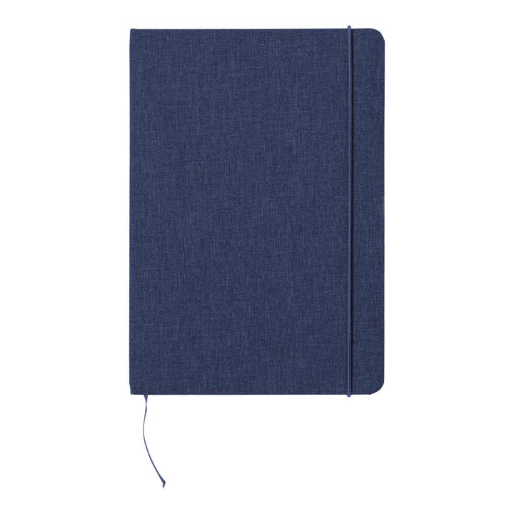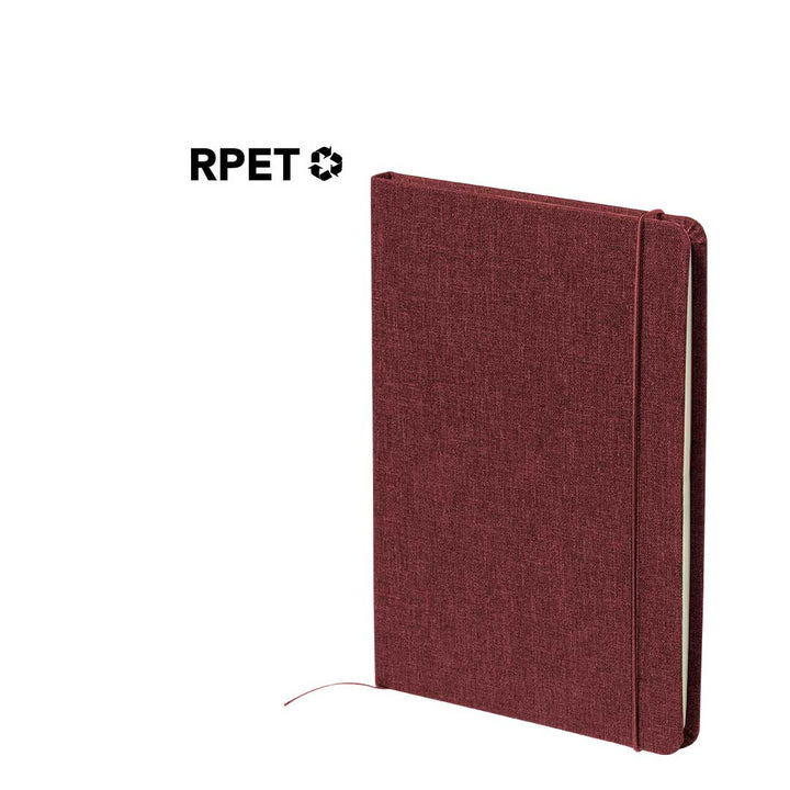 Ein praktisches Lesezeichen und ein elastischer Verschluss ergänzen den Notizblock und machen ihn noch benutzerfreundlicher. Das RPET-Logo auf der Rückseite des Einbands verdeutlicht die nachhaltige Herkunft des Materials.