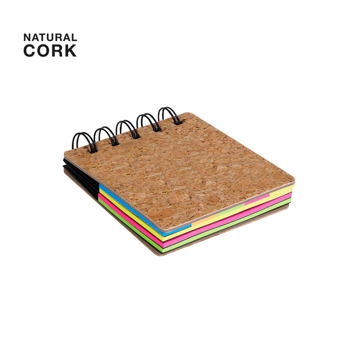Korknotizblock mit Haftnotizen. Beinhaltet: 75 große Haftnotizen und 125 mini Haftnotizen in verschiedenen Farben.Hergestellt aus pflanzlichen Elementen um den Einsatz von natürlichen Rohstoffen zu fördern und die Schadstoffemissionen zu reduzieren.