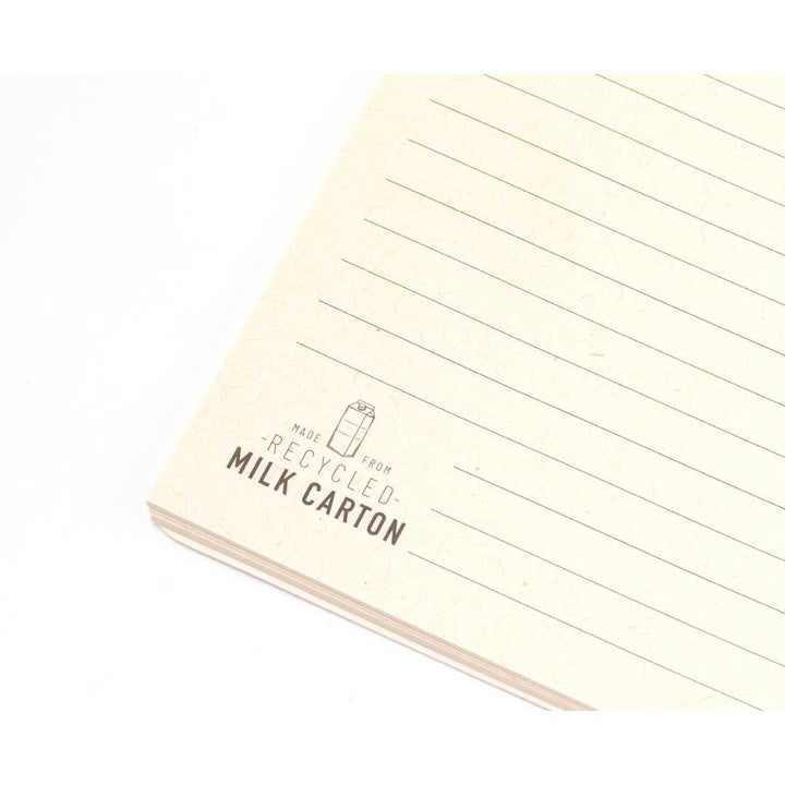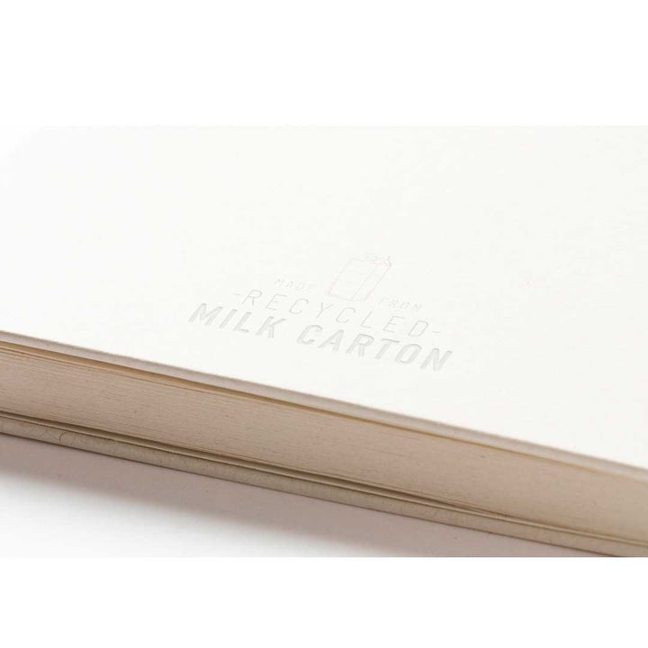 Ein kleines Logo auf der Rückseite weist dezent darauf hin, dass dieses Notizbuch aus recycelten Milchkartons gefertigt wurde. Geliefert wird es in einer speziell angepassten, recycelten Schutzhülle, die nicht nur das Produkt schützt, sondern auch die nachhaltige Philosophie unterstreicht. Durch die Wiederverwendung von Milchkartons trägt das Notizbuch Edilax aktiv zur Ressourcenschonung bei und fördert ein bewusstes Konsumverhalten.