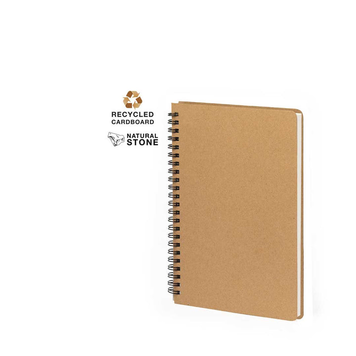 Das Notizbuch ist mit robusten, doppelten Metallringen ausgestattet, die für Stabilität und ein müheloses Umblättern sorgen. Der weiche Umschlag aus Recycling-Pappe verleiht dem Produkt eine schlichte, aber dennoch stilvolle Optik.