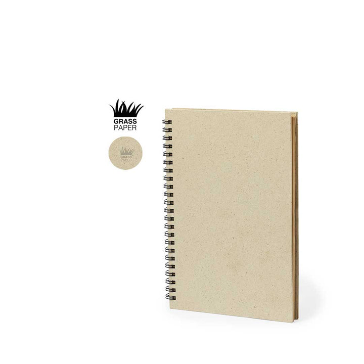 Das verwendete Graspapier ist ein innovativer Werkstoff, der aus schnell nachwachsendem Gras hergestellt wird. Es zeichnet sich durch einen geringen Wasserverbrauch und minimale Umweltauswirkungen aus. Zusätzlich kombiniert das Notizbuch Nigmar 50 % Graspapier mit 50 % recyceltem Holz, was eine umweltfreundliche und langlebige Nutzung gewährleistet. Die subtile Prägung des Graspapier-Emblems auf dem Umschlag hebt das ökologische Konzept dieses Produkts hervor.