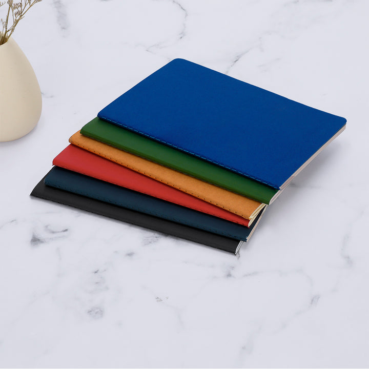 Notizbuch aus recyceltem Karton, mit abgestimmten Details auf dem Rücken. Beinhaltet 60 Blätter in cremefarbener gestreifter Ausführung.