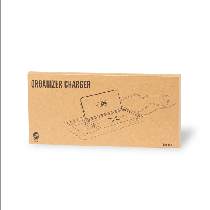 Kabelloser Organizer und Ladegerät 15W der Linie Natur. Mit Smartphone-Halterfunktion und extra Fach für Gegenstände. USB-Ausgang mit 2.000 mA. Lädt gleichzeitig bis zu 2 Geräte auf (1 durch kabelloses Laden und 1 durch Kabel). Hergestellt aus Bambus aus natürlichen Schnitten und kompatibel mit Geräten, die mit kabelloser Ladetechnik ausgestattet sind. Große Brandingfläche und präsentiert in einer individuellen Box im Öko-Design aus Kraftkarton.