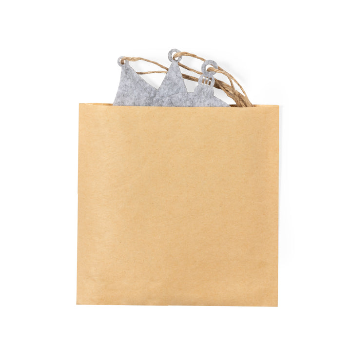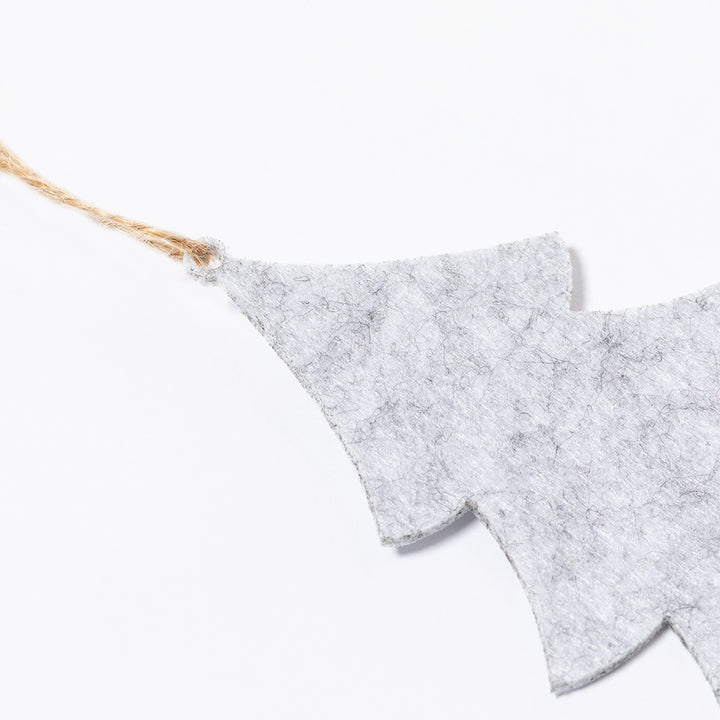 3er-Set Weihnachtsschmuck aus weichem Filz. Enthält 3 Motive: Weihnachtsbaum, Weihnachtsstern und Weihnachtskugel. Alle Teile sind mit Aufhänger versehen. Präsentiert in einer recycelten Papiertüte.