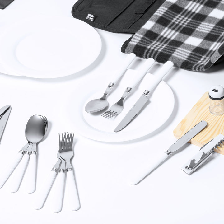 - 4 Löffel, Messer und Gabeln aus rostfreiem Stahl mit weißen PP-Griffen