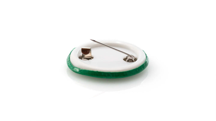 Pin in einer Vielzahl von Farben mit glänzendem Finish und Sicherheitsnadelverschluss.