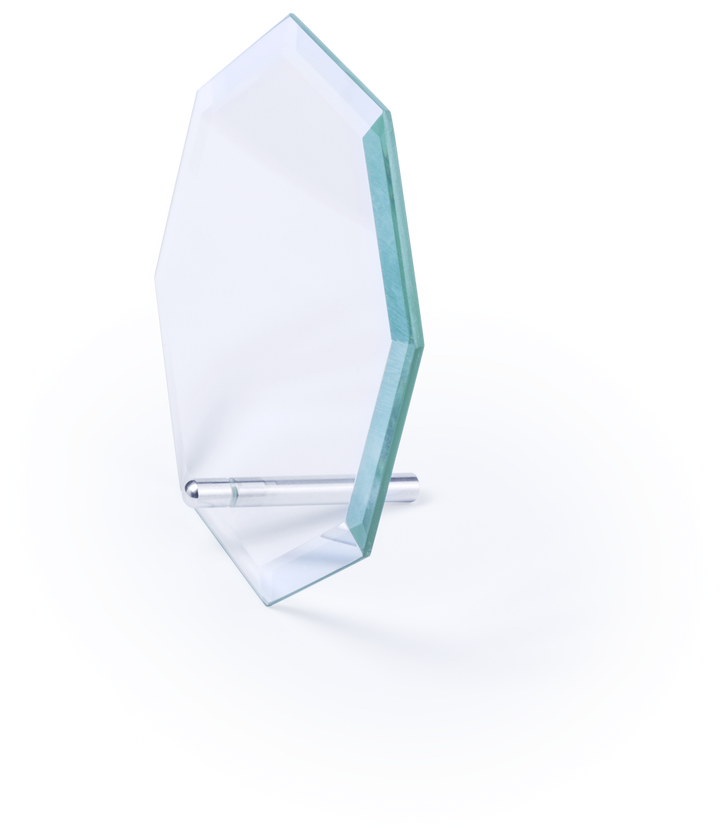 Trophäe aus dickem Glas mit elegantem achteckigem Design - speziell für den Laserdruck entwickelt. Präsentiert in einem individuellen Schutzcase.