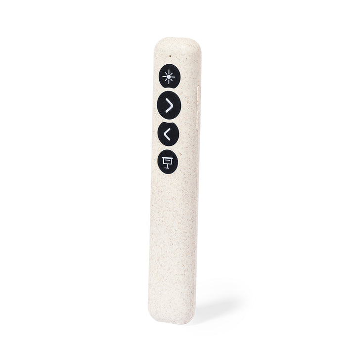 Stilvoller Laserpointer der Klasse 2 mit USB-Anschluss aus Weizenstroh. Speziell für PowerPoint- und Keynote-Präsentationen entwickelt, mit seitlicher Aktivierungstaste, Vorlauf-, Pause- und Rücklauftaste. Gehäuse speziell für Tampondruck-Branding entwickelt. Batteriebetrieben: 1xAAA enthalten. Präsentiert in einer Design-Kraftstoffbox, mit Bedienungsanleitung in Englisch und Spanisch.Weizenstroh fördert die Verwendung natürlicher Rohstoffe und reduziert so die Schadstoffemissionen.