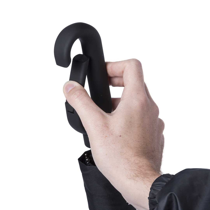 Der ergonomische Griff des Brosmon ist mit einem praktischen Karabiner ausgestattet, der ein komfortables Tragen ermöglicht. Ein Klettverschluss hält den Regenschirm sicher zusammen, wenn er nicht in Gebrauch ist. Die dazugehörige Hülle aus Pongee-Material schützt den Schirm während des Transports und sorgt für eine stilvolle Aufbewahrung.