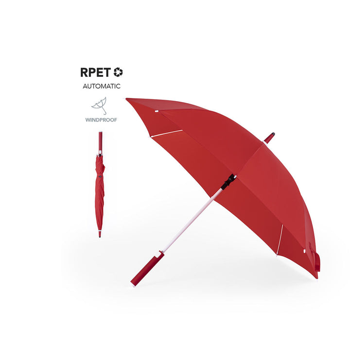 Der Regenschirm Wolver kombiniert elegantes Design mit zuverlässiger Funktionalität und ist der ideale Begleiter bei wechselhaftem Wetter. Gefertigt aus robustem 190T RPET Pongee-Material, bietet er hervorragenden Schutz vor Regen und Wind. Mit einem Durchmesser von 105 cm schützt er bequem eine Person und sorgt für Trockenheit, egal ob in der Stadt oder auf dem Land.