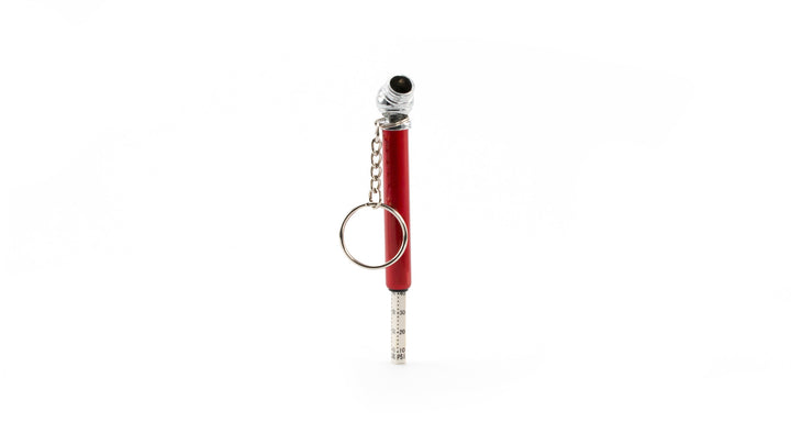 Schlüsselanhänger-Manometer für Reifen. In Aluminium-Ausführung und verschiedenen lebendigen Farben.