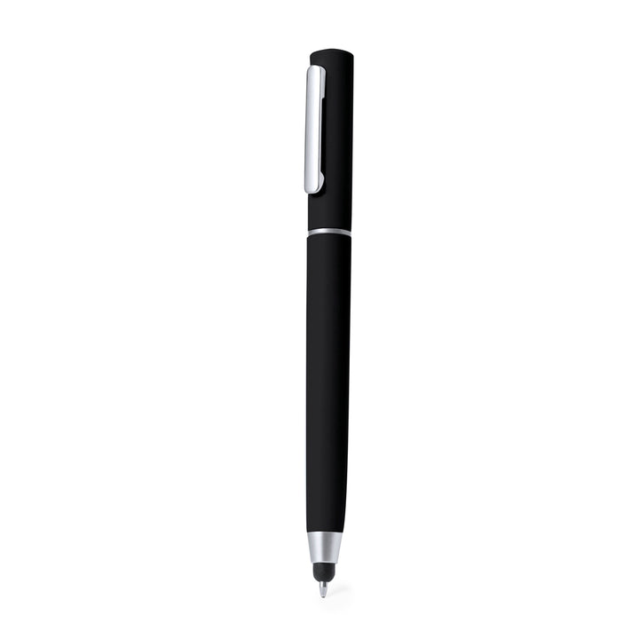 Handlicher Kugelschreiber mit Drehmechanik und Reinigungszubehör, das oben am Schaft untergebracht ist. Mit Pinsel und Metallspitze, geschützt durch eine Haube. Mit Metallclip und blauer Tinte. In verschiedenen Farben erhältlich und einzeln in einer Kraftbox verpackt.