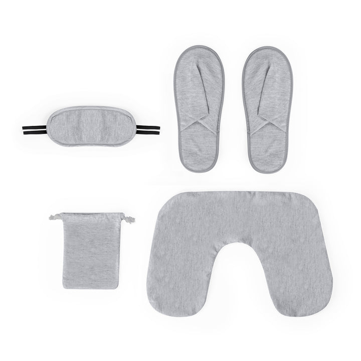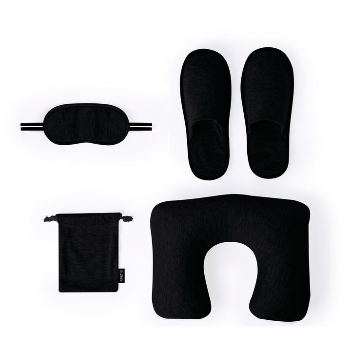 Tolles Reiseset aus weichem Polyester. Das Set enthält:Ergonomisches NackenkissenWeiche Augenmaske mit verstellbarem BandPassende PantoffelnLeicht zu verstauen in der Hülle aus RPET. Erhältlich in eleganten Farben, mit unverwechselbarem RPET-Logo auf der Hülle.RPET wird aus recyceltem Kunststoff hergestellt, um die Wiederverwendung von Kunststoffabfällen zu fördern und die Nachhaltigkeit des Planeten zu unterstützen.