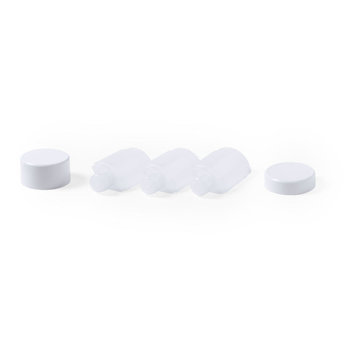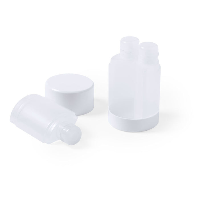 Reise-Set mit 3 Zubehörteilen aus widerstandsfähigem PP-Material. Inklusive 3 Flaschen mit wasserdichtem Verschluss. Präsentiert in einem auffälligen Etui.