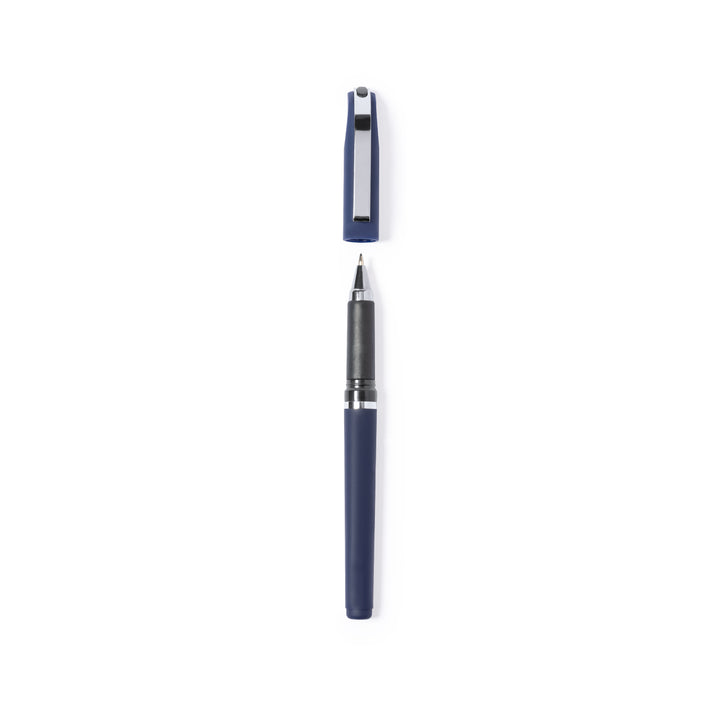 Rollerball aus widerstandsfähigem ABS und gummiertem Gehäuse. Metallklammer, verchromte Beschläge und in einer breiten Farbpalette erhältlich. Jumbo-Patrone und blauschreibender Tinte.