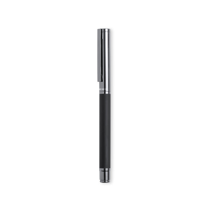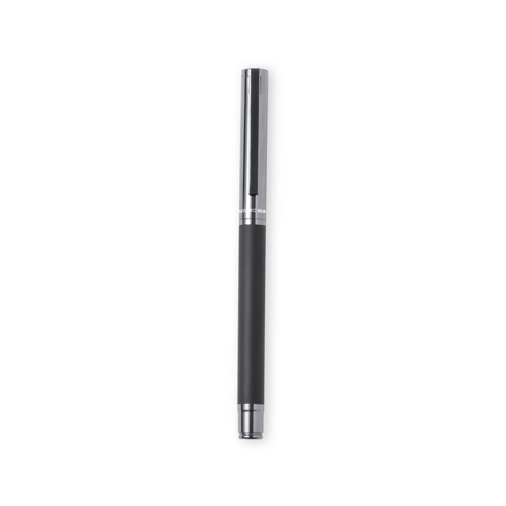Rollerpen von Antonio Miró aus Metall, mit mattschwarzem Schaft. Verchromte Details und Kappe mit Markenlogo. Jumbo-Patrone und blauschreibender Tinte. Präsentiert in einer eleganten und widerstandsfähigen schwarzen Einzelschachtel mit Antonio Miró-Logo und passendem Etui.