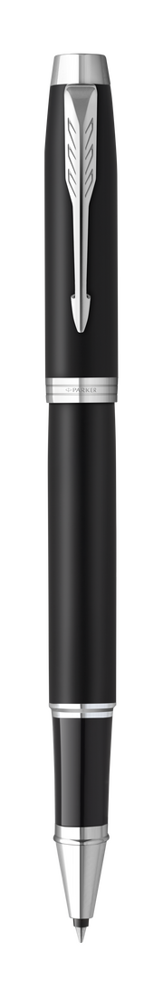 Parker IM Essential Tintenroller mit mattschwarz lackiertem Metallschaft und -kappe und verchromter Zierleiste. Unverwechselbarer Clip mit der ikonischen Pfeilspitze der Marke auf der Kappe. Mit schwarzschreibender Tinte und in einem individuellen schwarzen Etui mit Parker-Logo.Parker IM ist das Einstiegsmodell in das Parker-Universum. Es ist bis ins kleinste Detail durchdacht und für den intensiven täglichen Gebrauch konzipiert. Mit Parker Quink-Tinte für flüssiges, zuverlässiges Schreiben auf Papier.